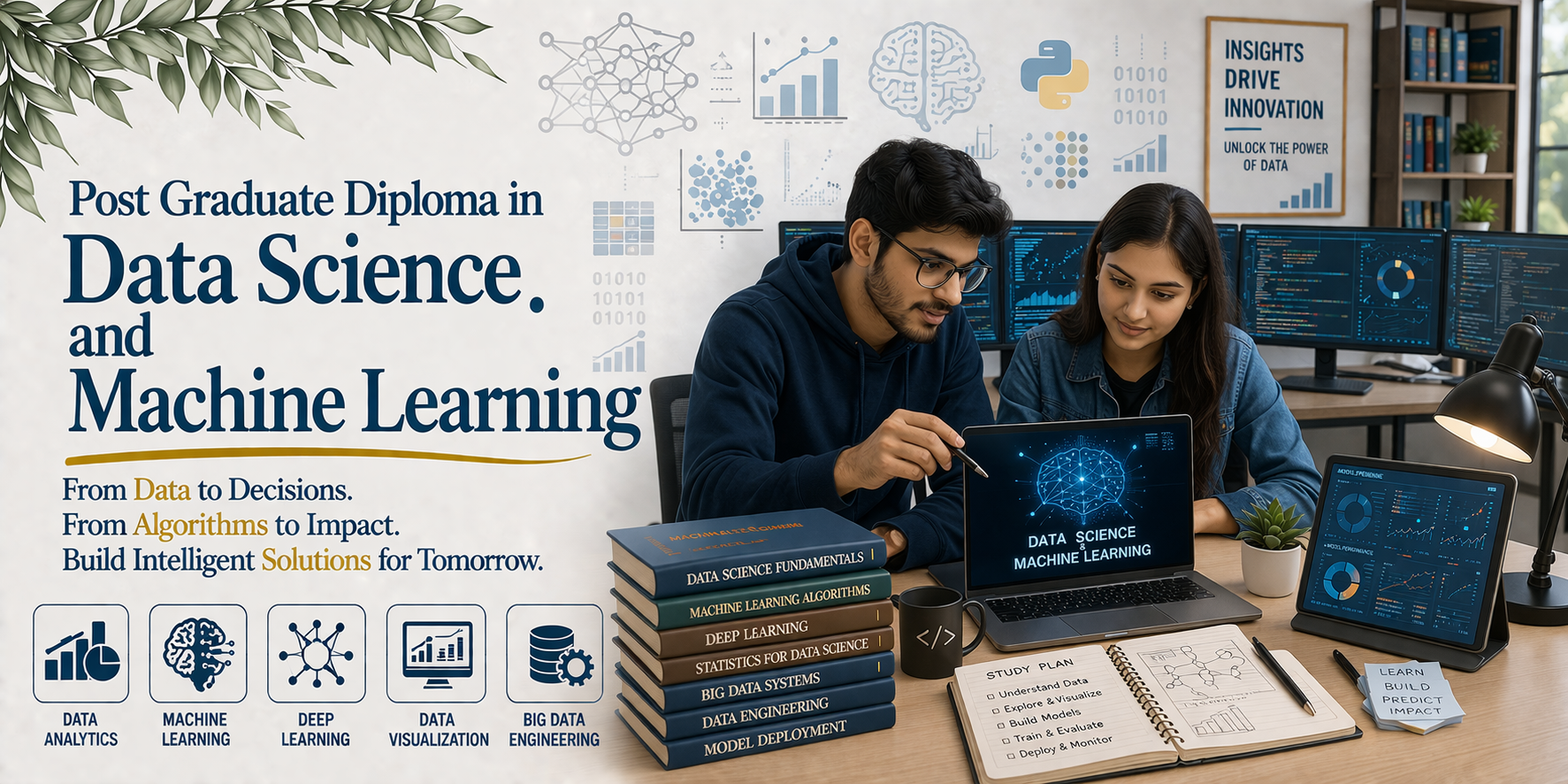 The P.G. Diploma in Data Science and Machine Learning at Translam is a one-year specialized program designed to build expertise in data analysis, predictive modeling, and AI-driven decision-making. It prepares graduates and professionals for high-demand careers in the fields of analytics and artificial intelligence.